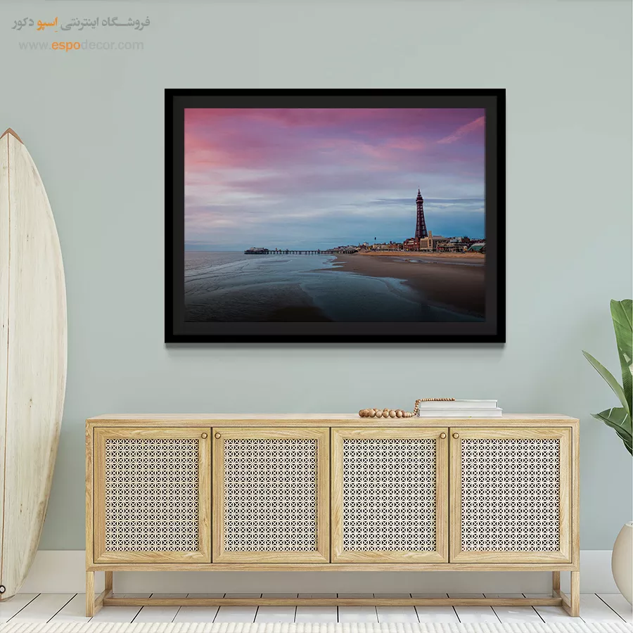تصویری است که روی کاغذ عکاسی یا متریال صاف چاپ شده و مستقیماً روی یک تخته چوبی صاف (معمولاً MDF یا فیبر) با ضخامت کم پرس میشود و فاقد هرگونه قاب و پوشش شیشهای است. - تابلو قابدار معمولی: