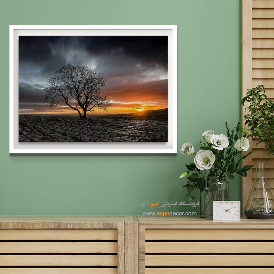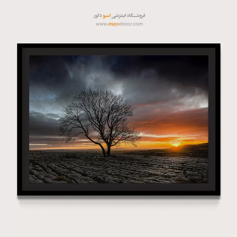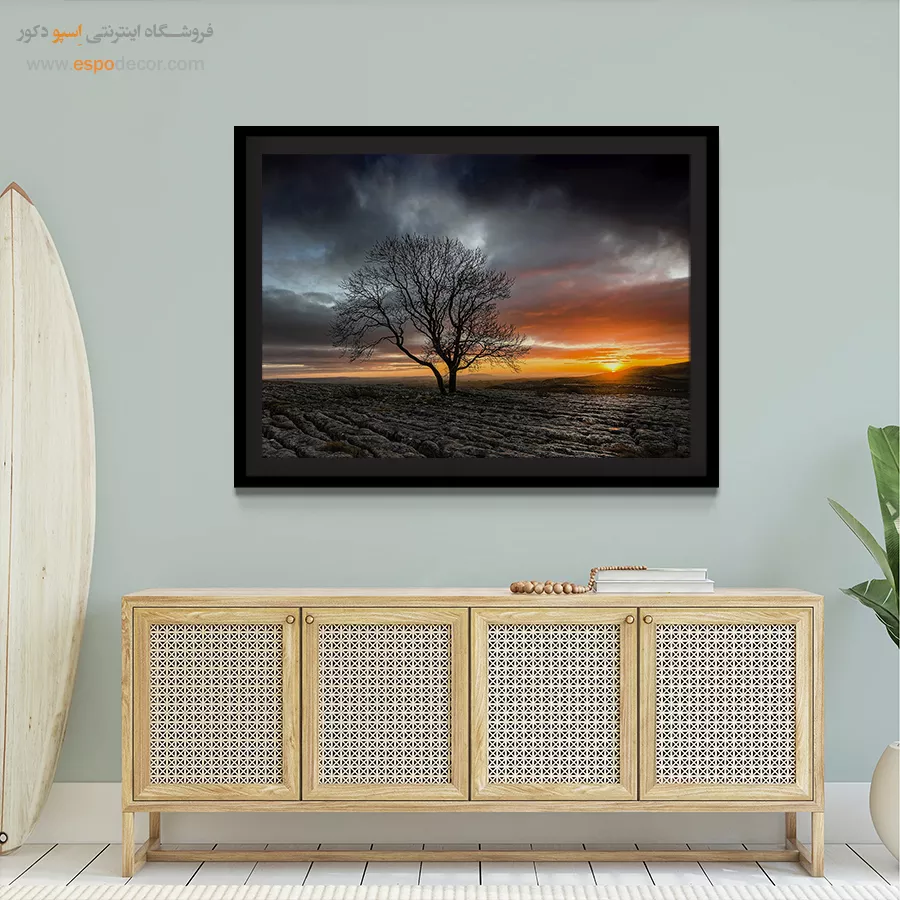تصویری است که روی کاغذ عکاسی یا متریال صاف چاپ شده و مستقیماً روی یک تخته چوبی صاف (معمولاً MDF یا فیبر) با ضخامت کم پرس میشود و فاقد هرگونه قاب و پوشش شیشهای است. - تابلو قابدار معمولی: