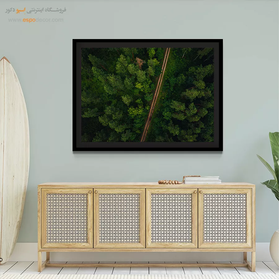 تصویری است که روی کاغذ عکاسی یا متریال صاف چاپ شده و مستقیماً روی یک تخته چوبی صاف (معمولاً MDF یا فیبر) با ضخامت کم پرس میشود و فاقد هرگونه قاب و پوشش شیشهای است. - تابلو قابدار معمولی: