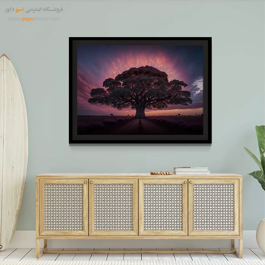 - ادامه طرح اصلی تا کنارههای بوم: ما در اسپو دکور از این روش استفاده میکنیم تا تابلو حالت منسجم و یکپارچه داشته باشد و از نمای کناری نیز جذاب دیده شود.