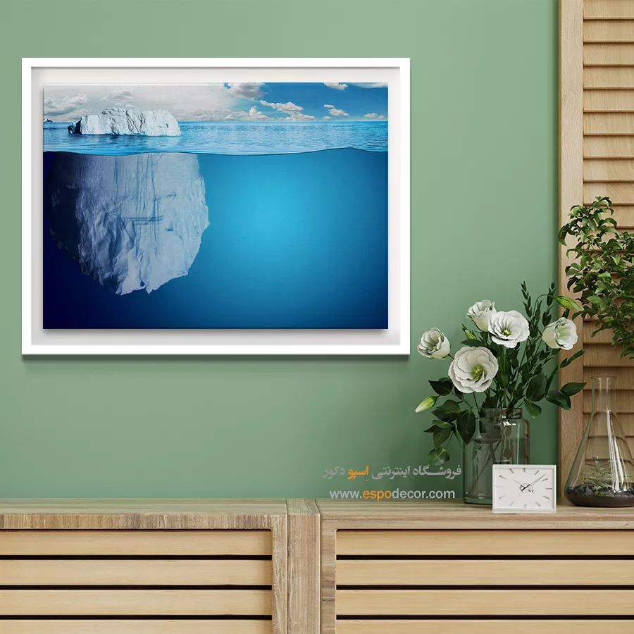- انتخاب سایههای مختلف از رنگ دیوار: مانند تابلو آبی تیره روی دیوار آبی روشن، که حس آرامش و یکپارچگی در فضا ایجاد میکند.