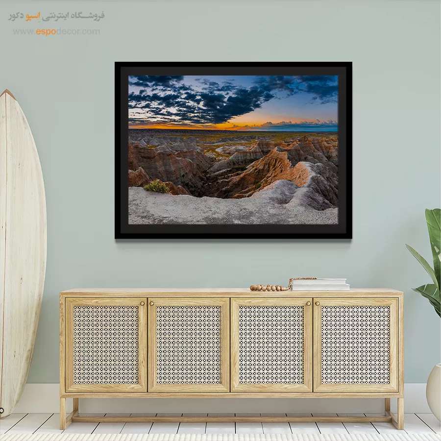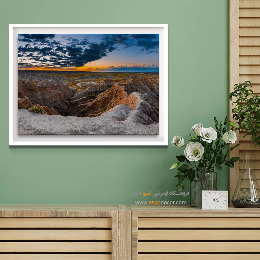- ادامه طرح اصلی تا کنارههای بوم: ما در اسپو دکور از این روش استفاده میکنیم تا تابلو حالت منسجم و یکپارچه داشته باشد و از نمای کناری نیز جذاب دیده شود.
