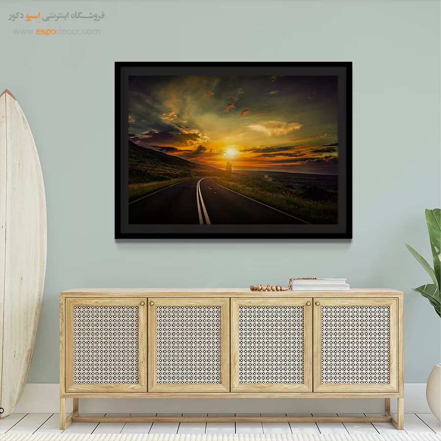 - ادامه طرح اصلی تا کنارههای بوم: ما در اسپو دکور از این روش استفاده میکنیم تا تابلو حالت منسجم و یکپارچه داشته باشد و از نمای کناری نیز جذاب دیده شود.