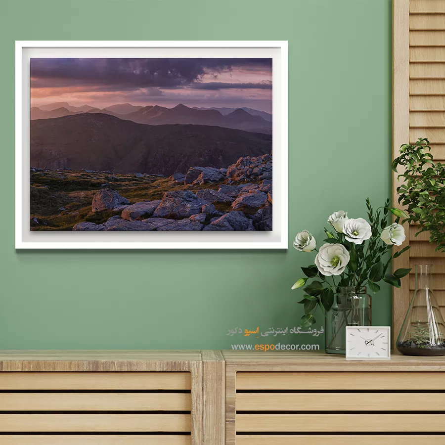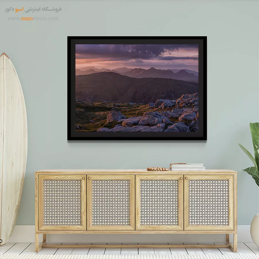 - ادامه طرح اصلی تا کنارههای بوم: ما در اسپو دکور از این روش استفاده میکنیم تا تابلو حالت منسجم و یکپارچه داشته باشد و از نمای کناری نیز جذاب دیده شود.