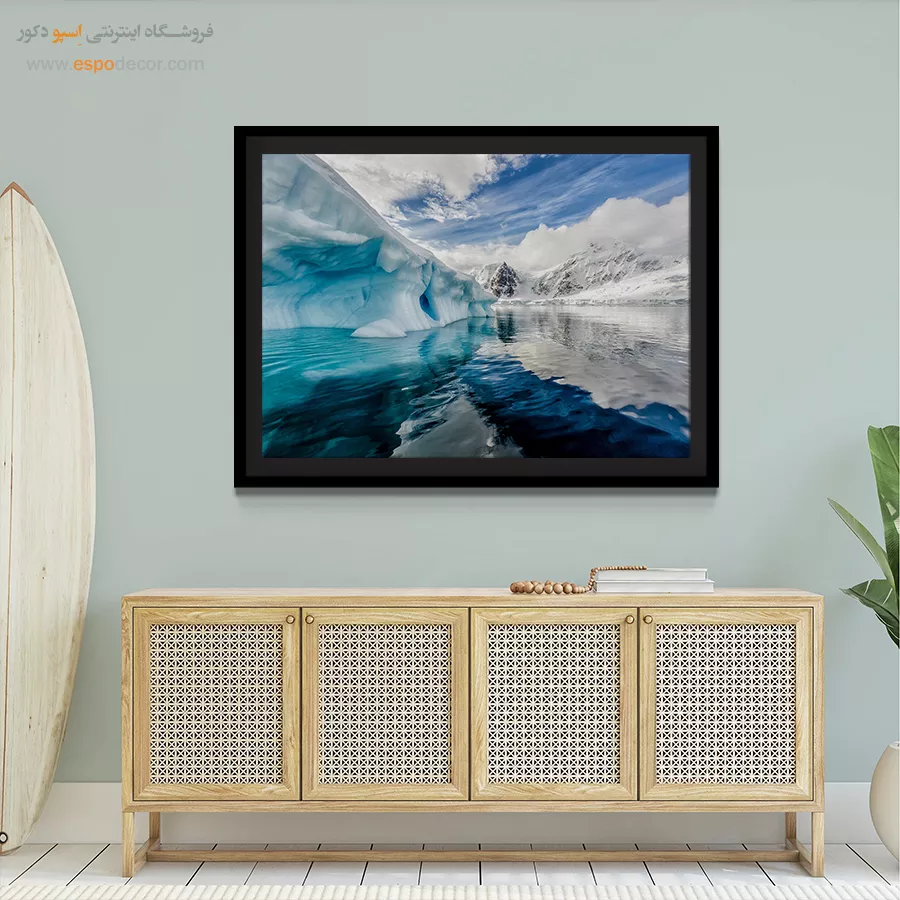 تصویری است که روی کاغذ عکاسی یا متریال صاف چاپ شده و مستقیماً روی یک تخته چوبی صاف (معمولاً MDF یا فیبر) با ضخامت کم پرس میشود و فاقد هرگونه قاب و پوشش شیشهای است. - تابلو قابدار معمولی: