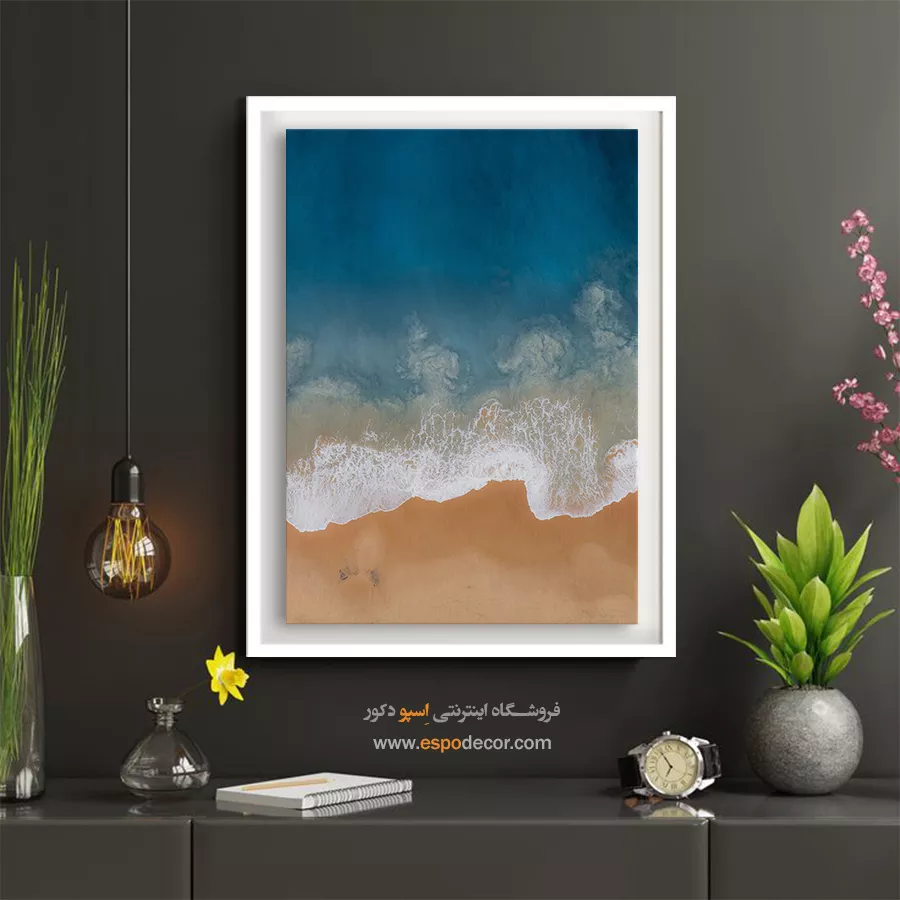 - انتخاب سایههای مختلف از رنگ دیوار: مانند تابلو آبی تیره روی دیوار آبی روشن، که حس آرامش و یکپارچگی در فضا ایجاد میکند.