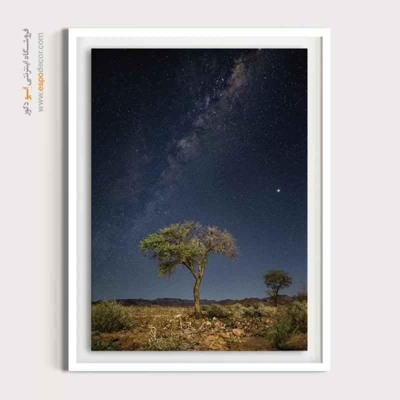 تصویری است که روی کاغذ عکاسی یا متریال صاف چاپ شده و مستقیماً روی یک تخته چوبی صاف (معمولاً MDF یا فیبر) با ضخامت کم پرس میشود و فاقد هرگونه قاب و پوشش شیشهای است. - تابلو قابدار معمولی: