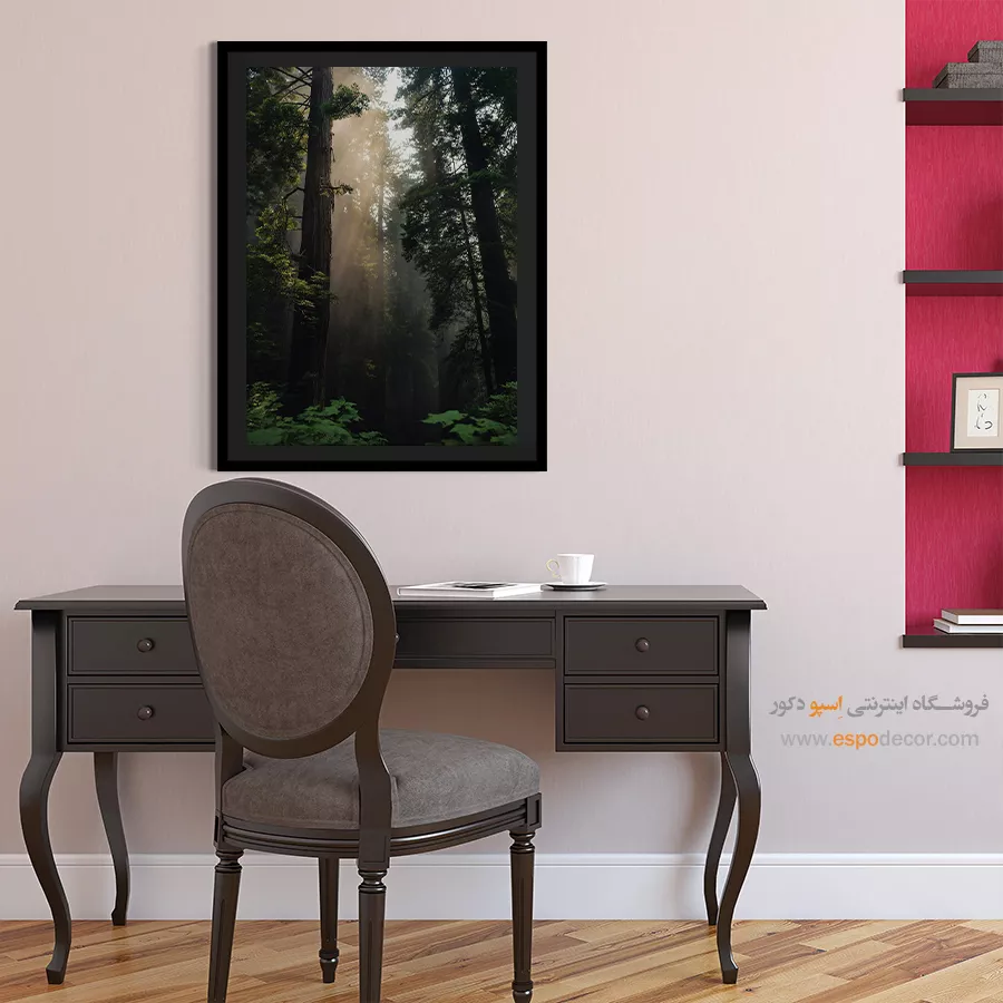 تصویری است که روی کاغذ عکاسی یا متریال صاف چاپ شده و مستقیماً روی یک تخته چوبی صاف (معمولاً MDF یا فیبر) با ضخامت کم پرس میشود و فاقد هرگونه قاب و پوشش شیشهای است. - تابلو قابدار معمولی: