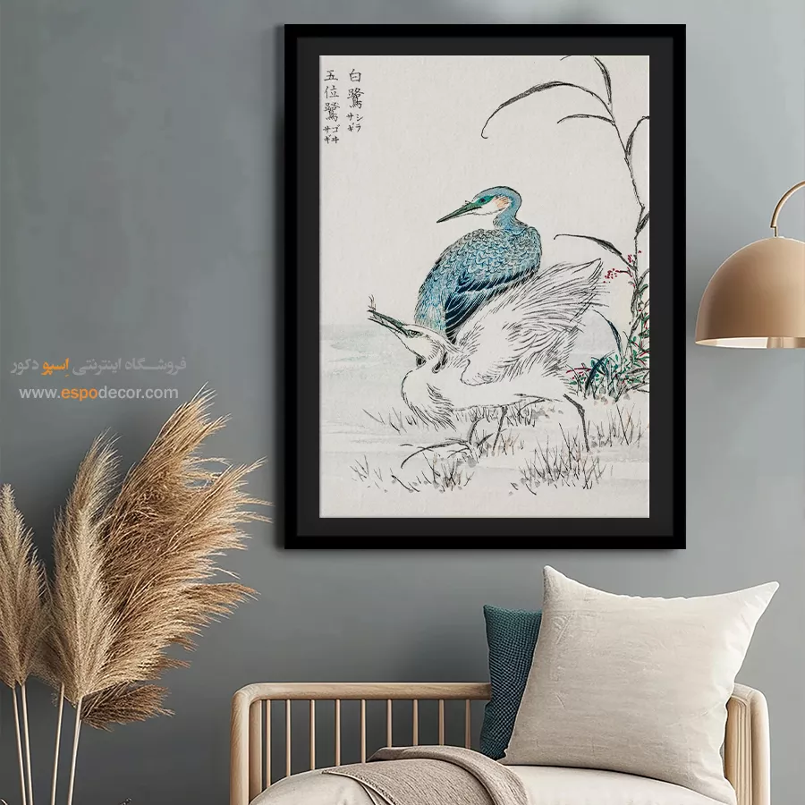 • انتخاب سایه‌های مختلف از رنگ دیوار: مانند تابلو آبی تیره روی دیوار آبی روشن، که حس آرامش و یکپارچگی در فضا ایجاد می‌کند.