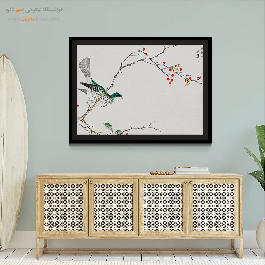 • انتخاب سایه‌های مختلف از رنگ دیوار: مانند تابلو آبی تیره روی دیوار آبی روشن، که حس آرامش و یکپارچگی در فضا ایجاد می‌کند.