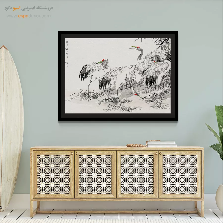 • نصب بالای مبلمان: اگر تابلوها بالای مبل یا کنسول نصب می‌شوند، لبه پایینی آن‌ها باید حدود ۱۵ تا ۳۰ سانتی‌متر بالاتر از لبه بالایی مبلمان باشد.