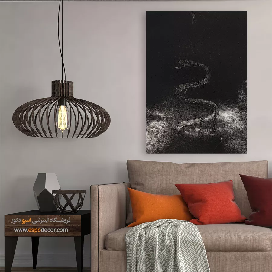 همچنین، استفاده از تابلوهای چندتکه با ابعاد کوچک تا متوسط یا یک تابلوی بزرگ با طرح عمودی (برای بلندتر نشان دادن سقف)، می‌تواند نقطه کانونی جذابی ایجاد کرده و کمبود نور را جبران نماید.