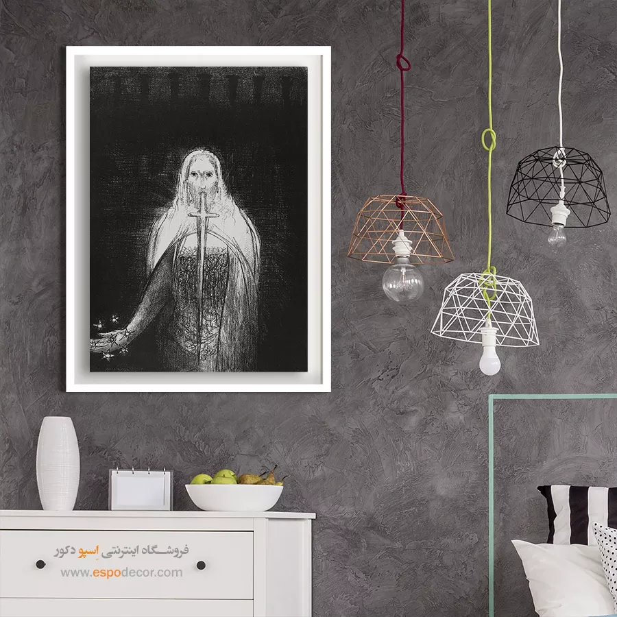 همچنین، استفاده از تابلوهای چندتکه با ابعاد کوچک تا متوسط یا یک تابلوی بزرگ با طرح عمودی (برای بلندتر نشان دادن سقف)، می‌تواند نقطه کانونی جذابی ایجاد کرده و کمبود نور را جبران نماید.
