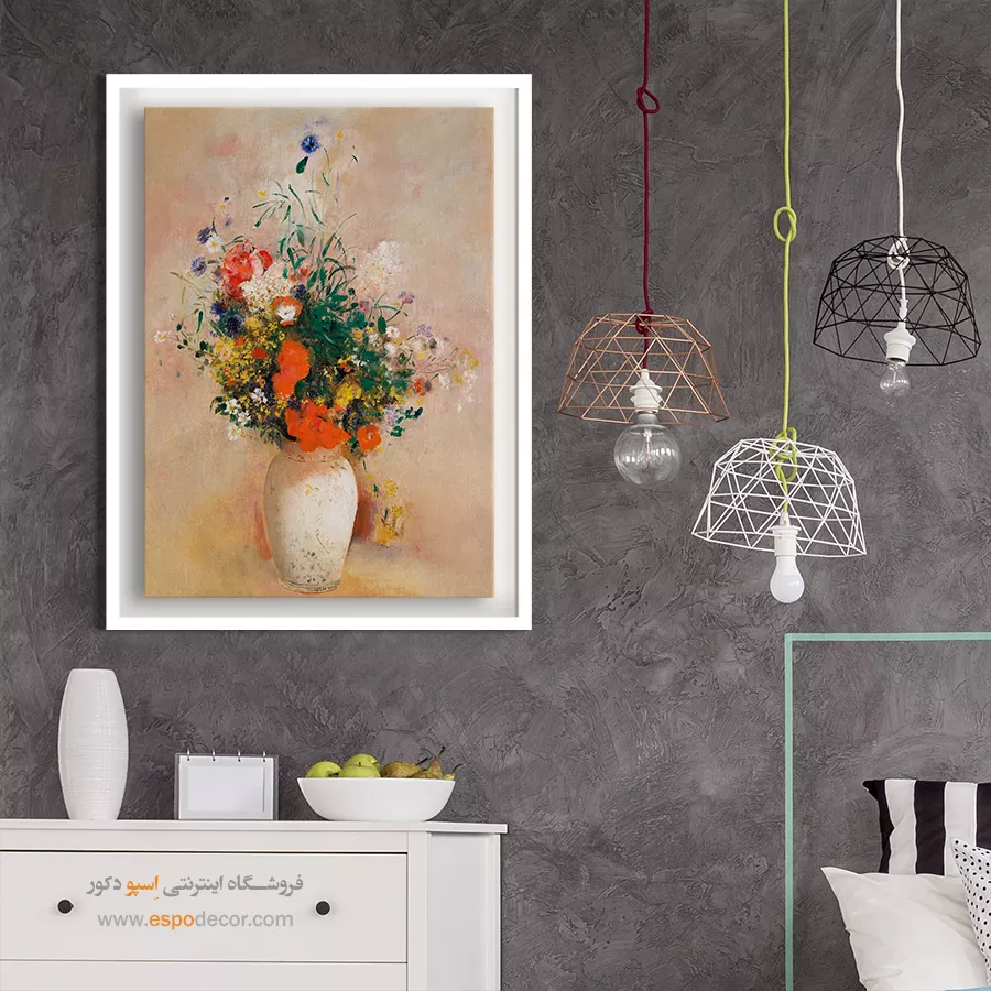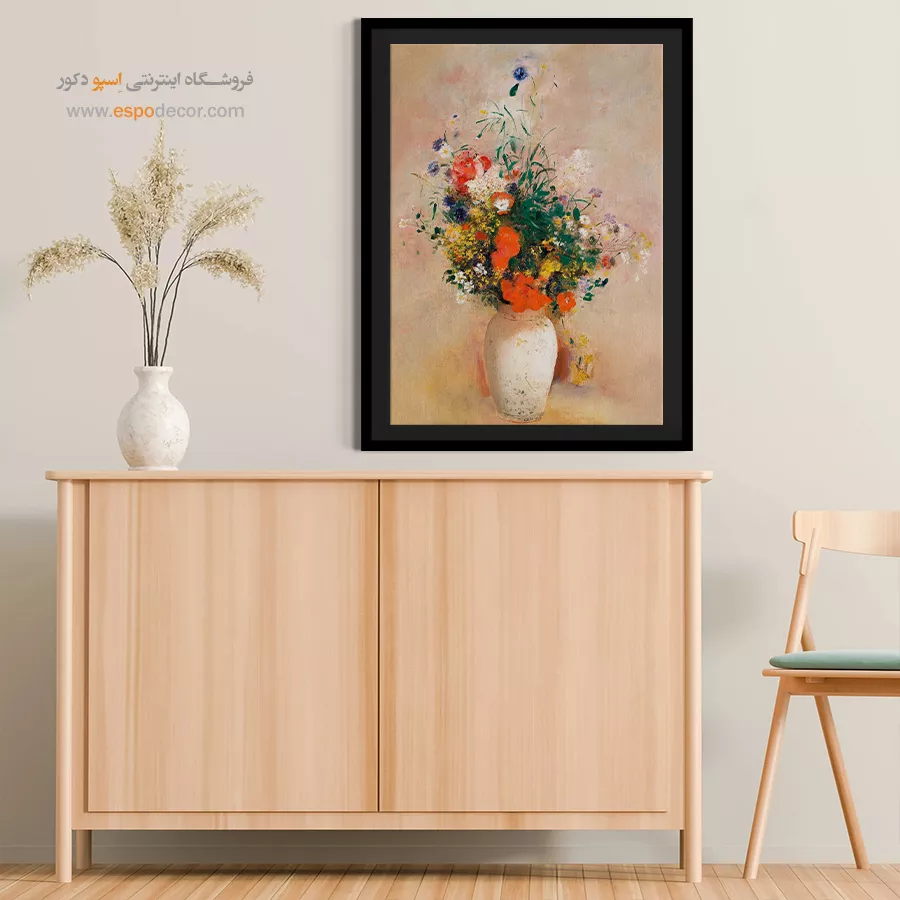 گلدان گل زمینه صورتی – تابلو نقاشی اودیلون ردون