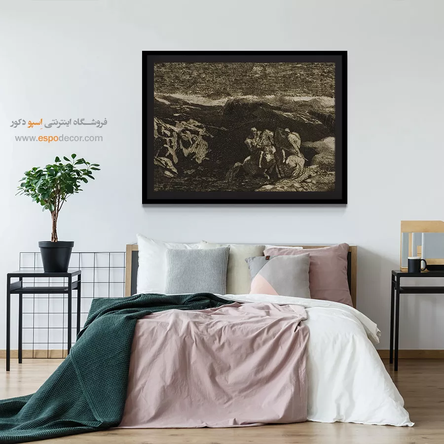 • نصب بالای مبلمان: اگر تابلوها بالای مبل یا کنسول نصب می‌شوند، لبه پایینی آن‌ها باید حدود ۱۵ تا ۳۰ سانتی‌متر بالاتر از لبه بالایی مبلمان باشد.