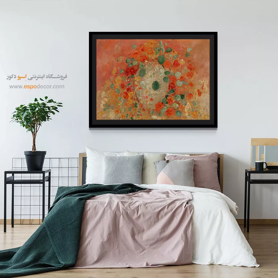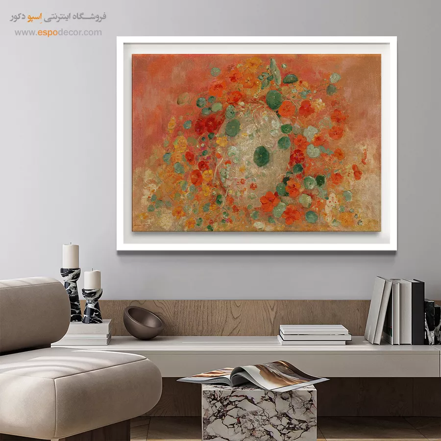 - انتخاب رنگهای مکمل یا متضاد: مانند تابلویی با تناژ نارنجی برای دیوار آبی، که تضاد جذاب و پویایی ایجاد میکند و تابلو را به نقطه کانونی تبدیل میکند.