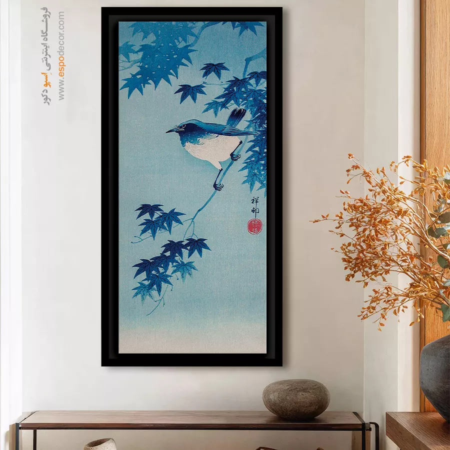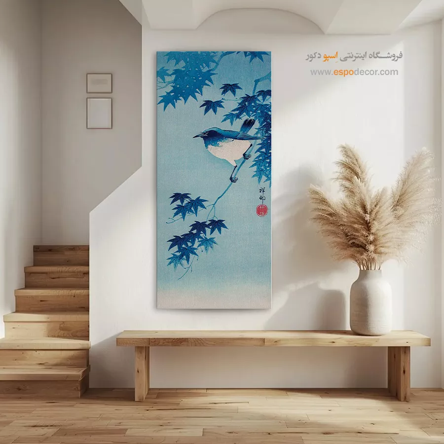 • انتخاب سایه‌های مختلف از رنگ دیوار: مانند تابلو آبی تیره روی دیوار آبی روشن، که حس آرامش و یکپارچگی در فضا ایجاد می‌کند.