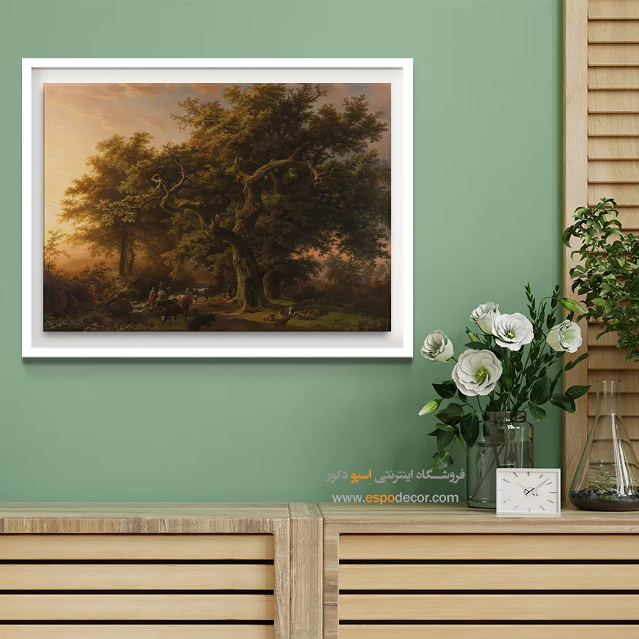 سبک کلاسیک: نیازمند شکوه و لوکس بودن است. تابلو بوم باید شامل نقاشی‌های طبیعت، پرتره‌های قدیمی، یا آثار رنسانسی با رنگ‌های غنی و عمیق باشد تا حس رسمی و لوکس فضا تقویت گردد.