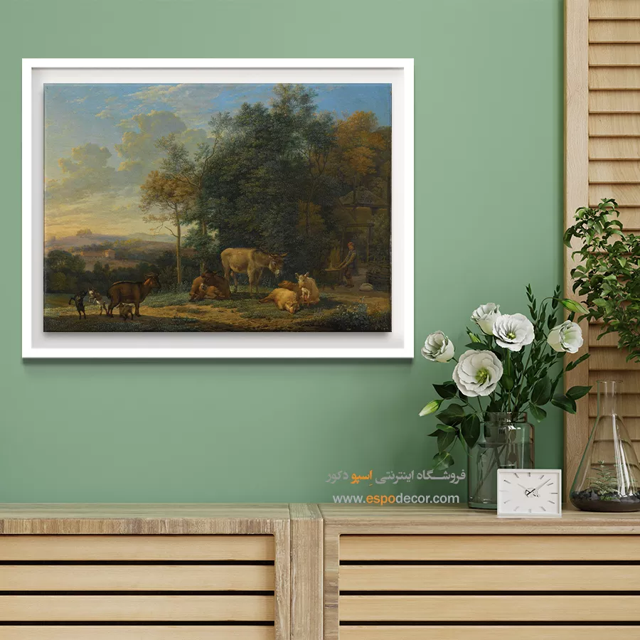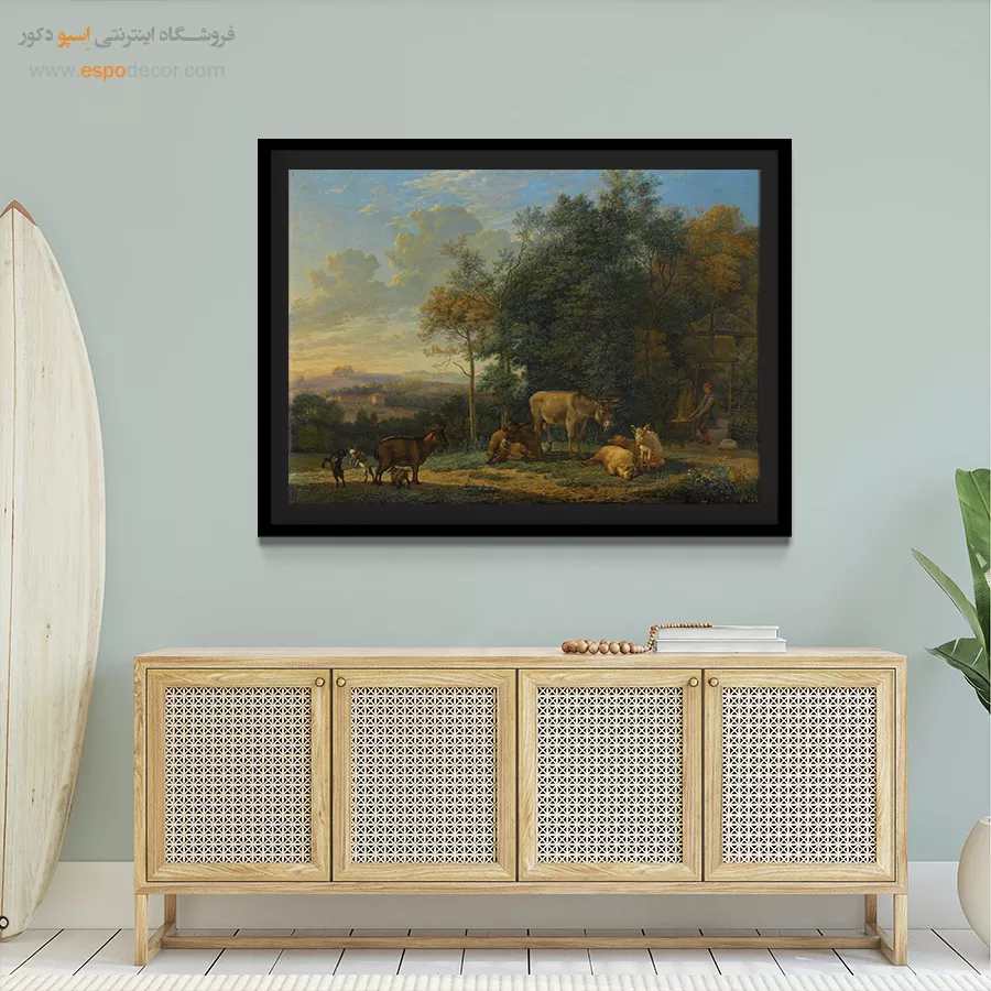 سبک کلاسیک: نیازمند شکوه و لوکس بودن است. تابلو بوم باید شامل نقاشی‌های طبیعت، پرتره‌های قدیمی، یا آثار رنسانسی با رنگ‌های غنی و عمیق باشد تا حس رسمی و لوکس فضا تقویت گردد.