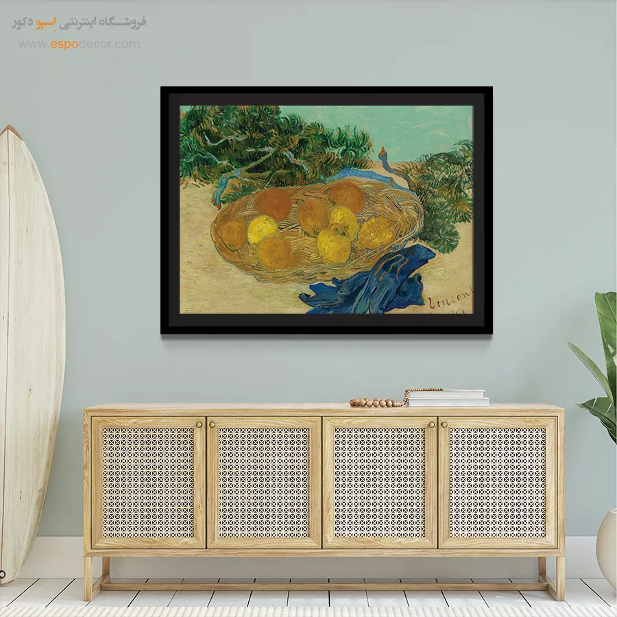 • انتخاب رنگ‌های مکمل یا متضاد: مانند تابلویی با تناژ نارنجی برای دیوار آبی، که تضاد جذاب و پویایی ایجاد می‌کند و تابلو را به نقطه کانونی تبدیل می‌کند.