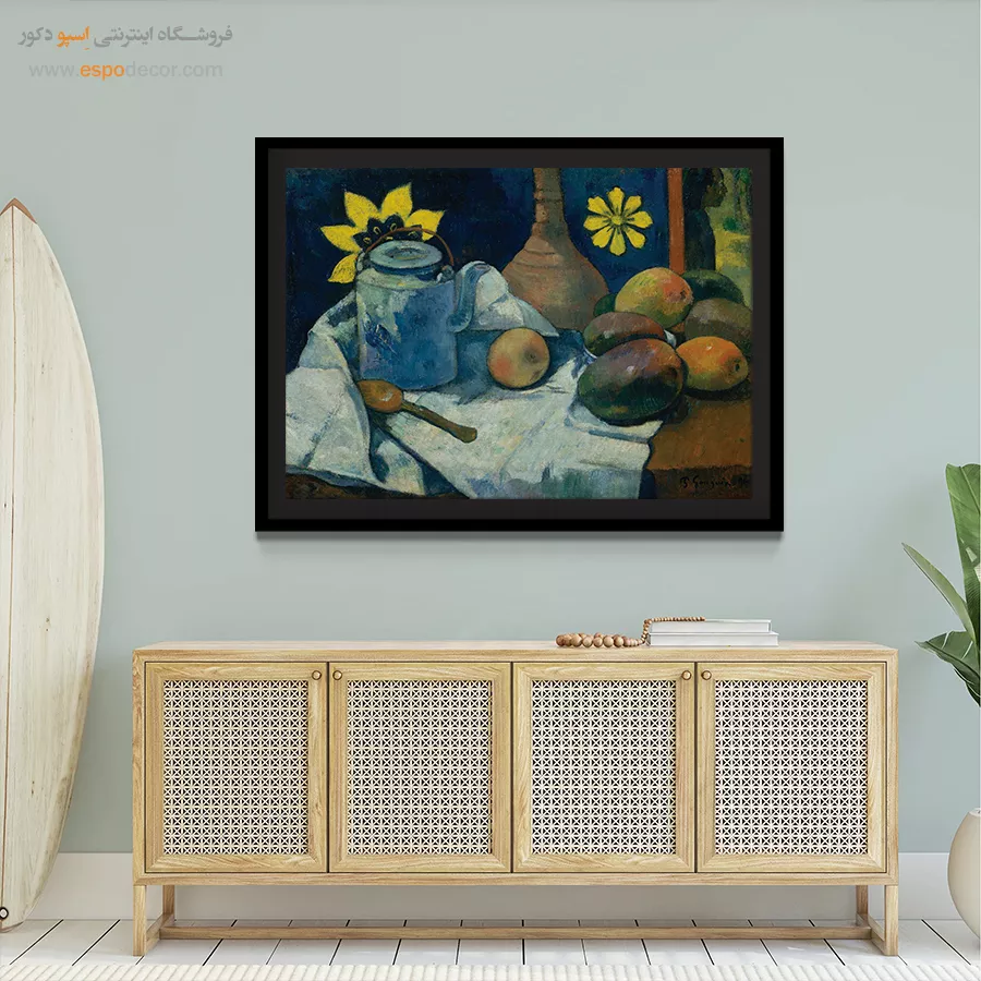 • انتخاب رنگ‌های مکمل یا متضاد: مانند تابلویی با تناژ نارنجی برای دیوار آبی، که تضاد جذاب و پویایی ایجاد می‌کند و تابلو را به نقطه کانونی تبدیل می‌کند.