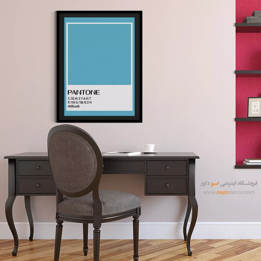 - انتخاب سایههای مختلف از رنگ دیوار: مانند تابلو آبی تیره روی دیوار آبی روشن، که حس آرامش و یکپارچگی در فضا ایجاد میکند.