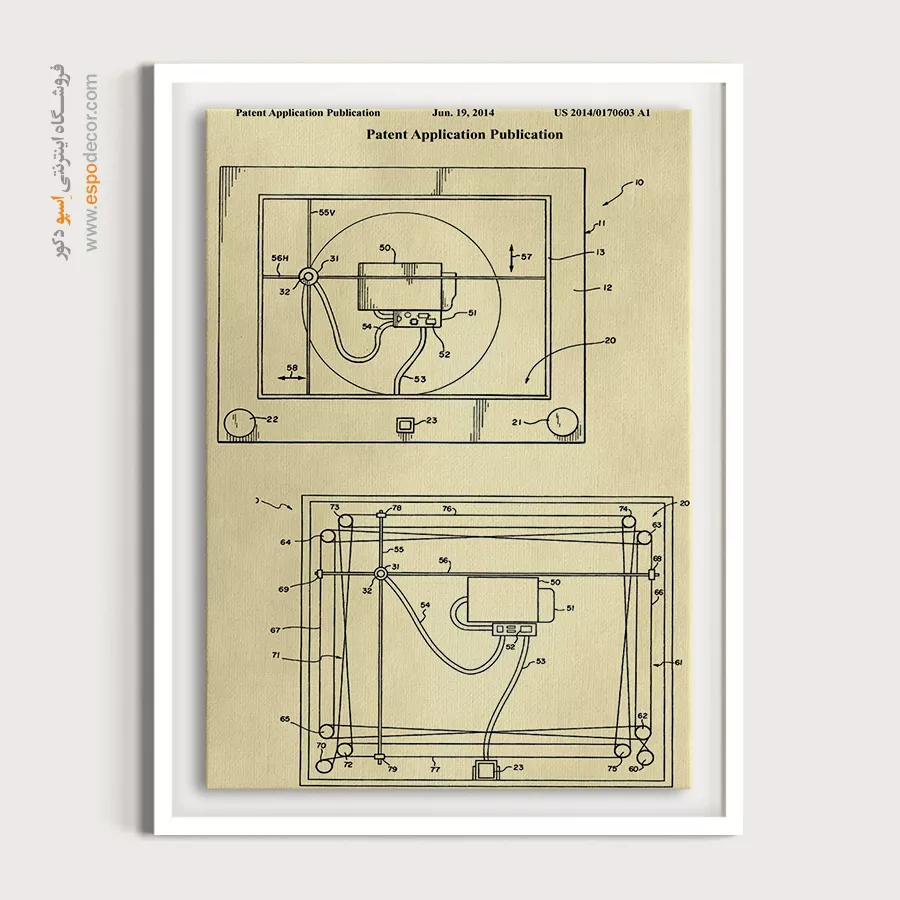 تابلو بوم طراحی اختراعات، بازتابی هنرمندانه از لحظههای درخشان نبوغ بشری است؛ جایی که علم و خلاقیت در قالب خطوط فنی و طراحیهای کلاسیک با یکدیگر آمیختهاند. این تابلو نهتنها یک اثر دکوراتیو چشمنواز است، بلکه داستانی الهامبخش از نوآوری و تحول را روایت میکند.