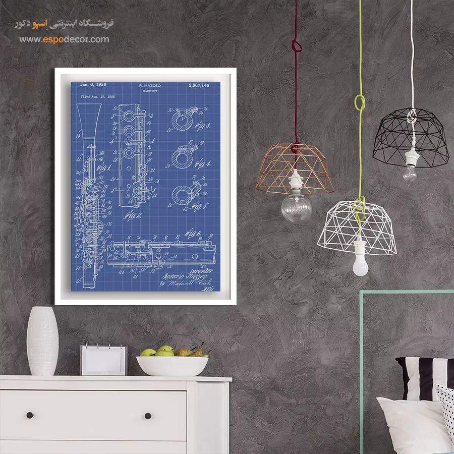 تابلو بوم طراحی اختراعات، بازتابی هنرمندانه از لحظههای درخشان نبوغ بشری است؛ جایی که علم و خلاقیت در قالب خطوط فنی و طراحیهای کلاسیک با یکدیگر آمیختهاند. این تابلو نهتنها یک اثر دکوراتیو چشمنواز است، بلکه داستانی الهامبخش از نوآوری و تحول را روایت میکند.