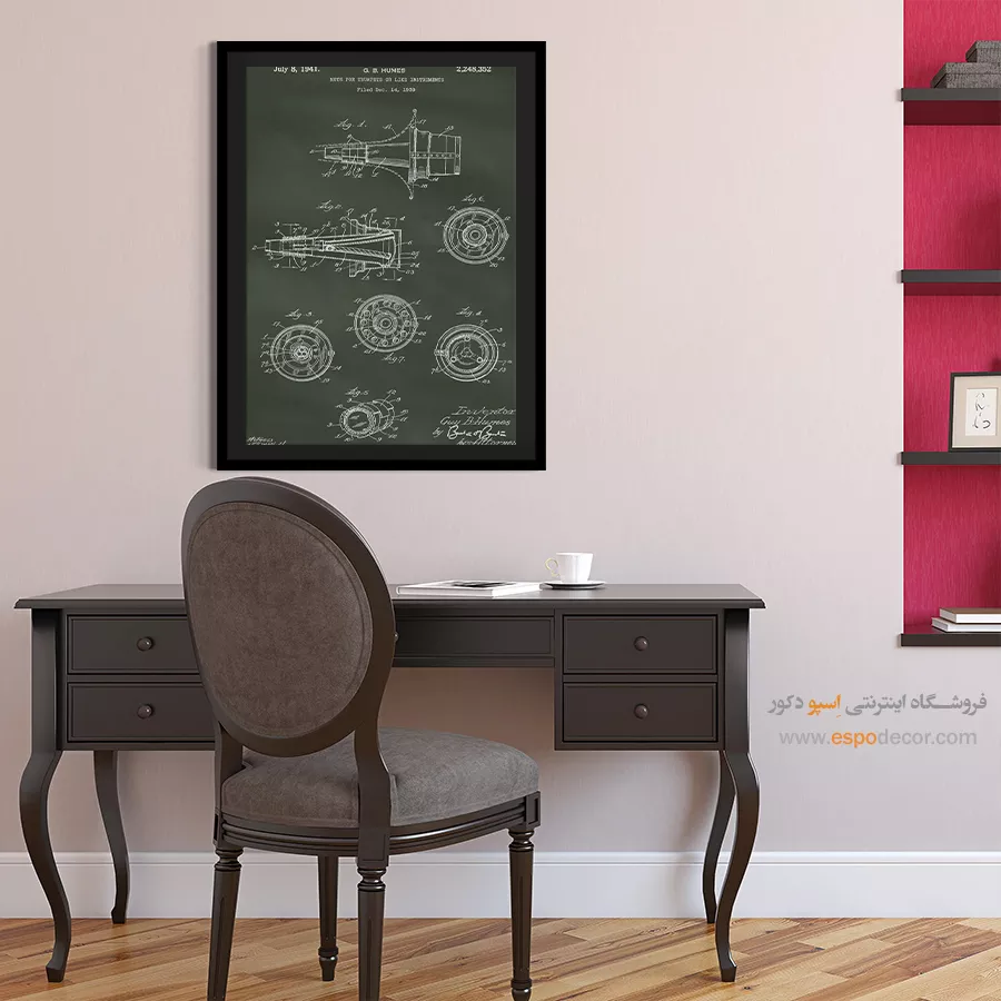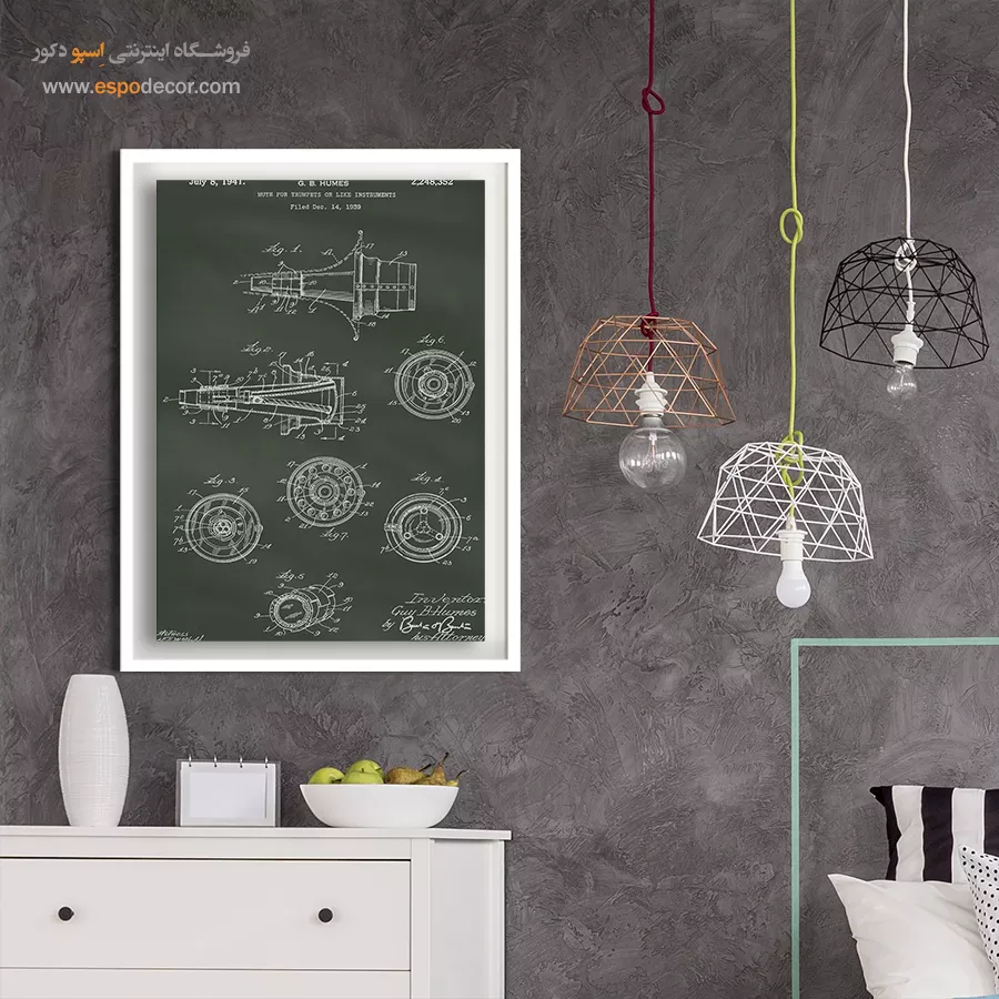 تابلو بوم طراحی اختراعات، بازتابی هنرمندانه از لحظههای درخشان نبوغ بشری است؛ جایی که علم و خلاقیت در قالب خطوط فنی و طراحیهای کلاسیک با یکدیگر آمیختهاند. این تابلو نهتنها یک اثر دکوراتیو چشمنواز است، بلکه داستانی الهامبخش از نوآوری و تحول را روایت میکند.