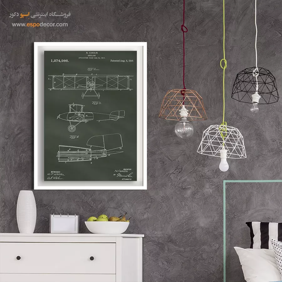 تابلو بوم طراحی اختراعات، بازتابی هنرمندانه از لحظههای درخشان نبوغ بشری است؛ جایی که علم و خلاقیت در قالب خطوط فنی و طراحیهای کلاسیک با یکدیگر آمیختهاند. این تابلو نهتنها یک اثر دکوراتیو چشمنواز است، بلکه داستانی الهامبخش از نوآوری و تحول را روایت میکند.