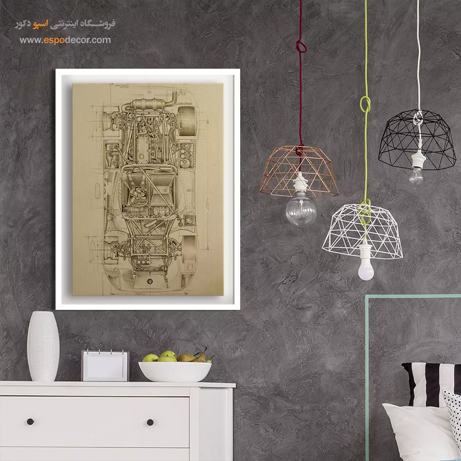 تابلو بوم طراحی اختراعات، بازتابی هنرمندانه از لحظههای درخشان نبوغ بشری است؛ جایی که علم و خلاقیت در قالب خطوط فنی و طراحیهای کلاسیک با یکدیگر آمیختهاند. این تابلو نهتنها یک اثر دکوراتیو چشمنواز است، بلکه داستانی الهامبخش از نوآوری و تحول را روایت میکند.