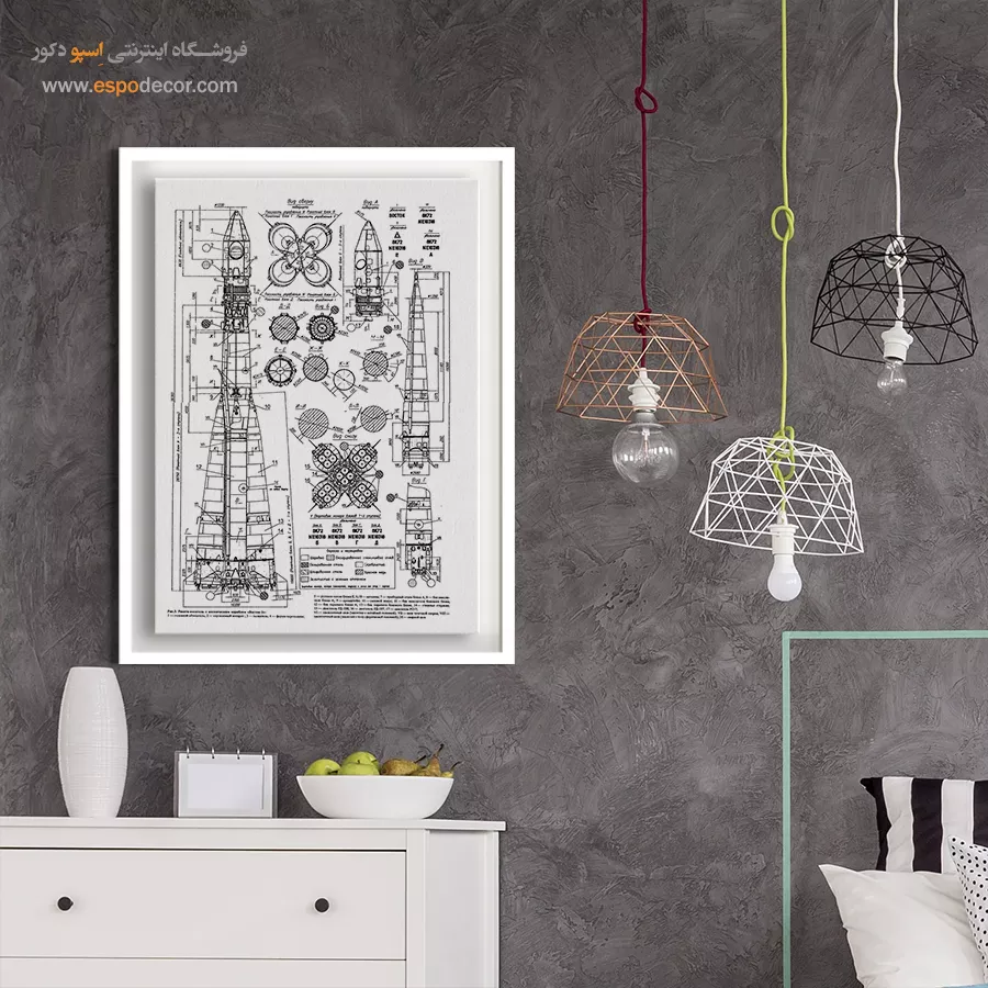 تابلو بوم طراحی اختراعات، بازتابی هنرمندانه از لحظههای درخشان نبوغ بشری است؛ جایی که علم و خلاقیت در قالب خطوط فنی و طراحیهای کلاسیک با یکدیگر آمیختهاند. این تابلو نهتنها یک اثر دکوراتیو چشمنواز است، بلکه داستانی الهامبخش از نوآوری و تحول را روایت میکند.