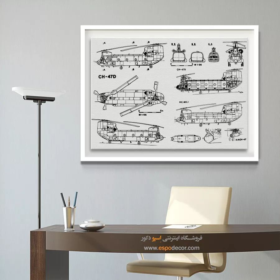 تابلو بوم طراحی اختراعات، بازتابی هنرمندانه از لحظههای درخشان نبوغ بشری است؛ جایی که علم و خلاقیت در قالب خطوط فنی و طراحیهای کلاسیک با یکدیگر آمیختهاند. این تابلو نهتنها یک اثر دکوراتیو چشمنواز است، بلکه داستانی الهامبخش از نوآوری و تحول را روایت میکند.