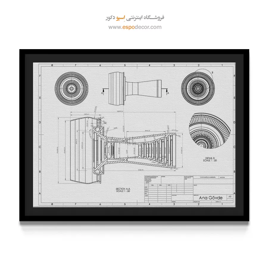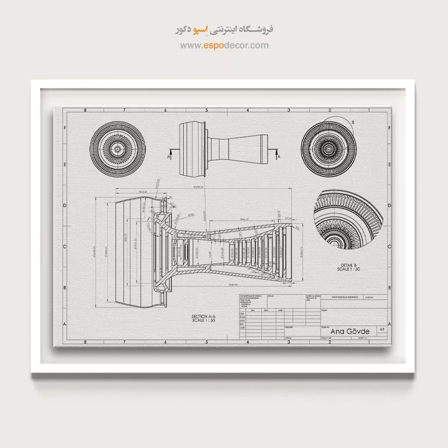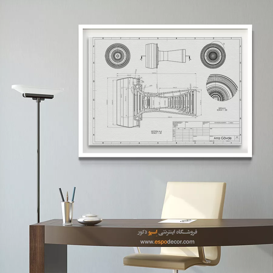 تابلو بوم طراحی اختراعات، بازتابی هنرمندانه از لحظههای درخشان نبوغ بشری است؛ جایی که علم و خلاقیت در قالب خطوط فنی و طراحیهای کلاسیک با یکدیگر آمیختهاند. این تابلو نهتنها یک اثر دکوراتیو چشمنواز است، بلکه داستانی الهامبخش از نوآوری و تحول را روایت میکند.