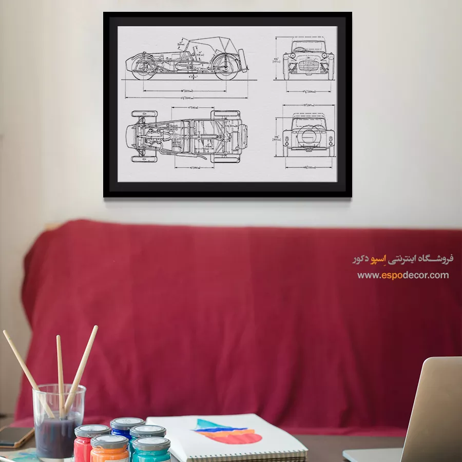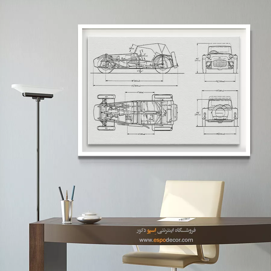 تابلو بوم طراحی اختراعات، بازتابی هنرمندانه از لحظههای درخشان نبوغ بشری است؛ جایی که علم و خلاقیت در قالب خطوط فنی و طراحیهای کلاسیک با یکدیگر آمیختهاند. این تابلو نهتنها یک اثر دکوراتیو چشمنواز است، بلکه داستانی الهامبخش از نوآوری و تحول را روایت میکند.