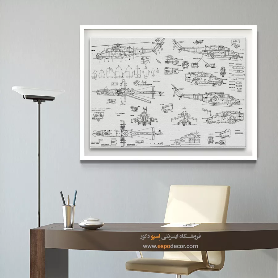 تابلو بوم طراحی اختراعات، بازتابی هنرمندانه از لحظههای درخشان نبوغ بشری است؛ جایی که علم و خلاقیت در قالب خطوط فنی و طراحیهای کلاسیک با یکدیگر آمیختهاند. این تابلو نهتنها یک اثر دکوراتیو چشمنواز است، بلکه داستانی الهامبخش از نوآوری و تحول را روایت میکند.