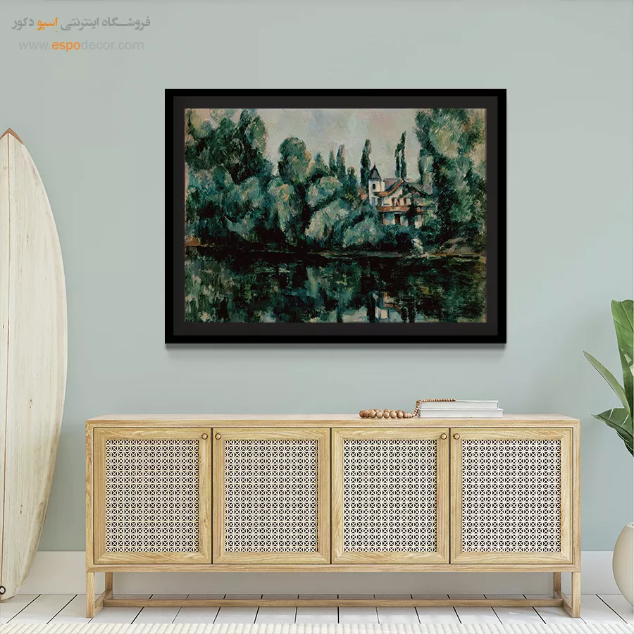 • انتخاب سایه‌های مختلف از رنگ دیوار: مانند تابلو آبی تیره روی دیوار آبی روشن، که حس آرامش و یکپارچگی در فضا ایجاد می‌کند.