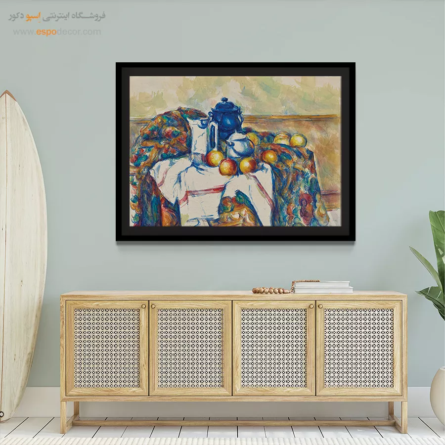 • انتخاب سایه‌های مختلف از رنگ دیوار: مانند تابلو آبی تیره روی دیوار آبی روشن، که حس آرامش و یکپارچگی در فضا ایجاد می‌کند.