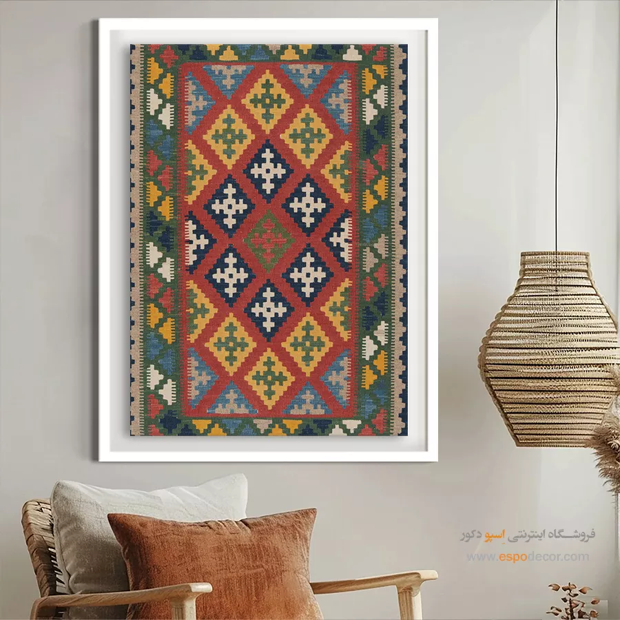اگر دکور خانه شما حال و هوای سنتی دارد، تابلو سنتی ایرانی با طرح گلیم بهترین انتخاب برای تکمیل آن است.