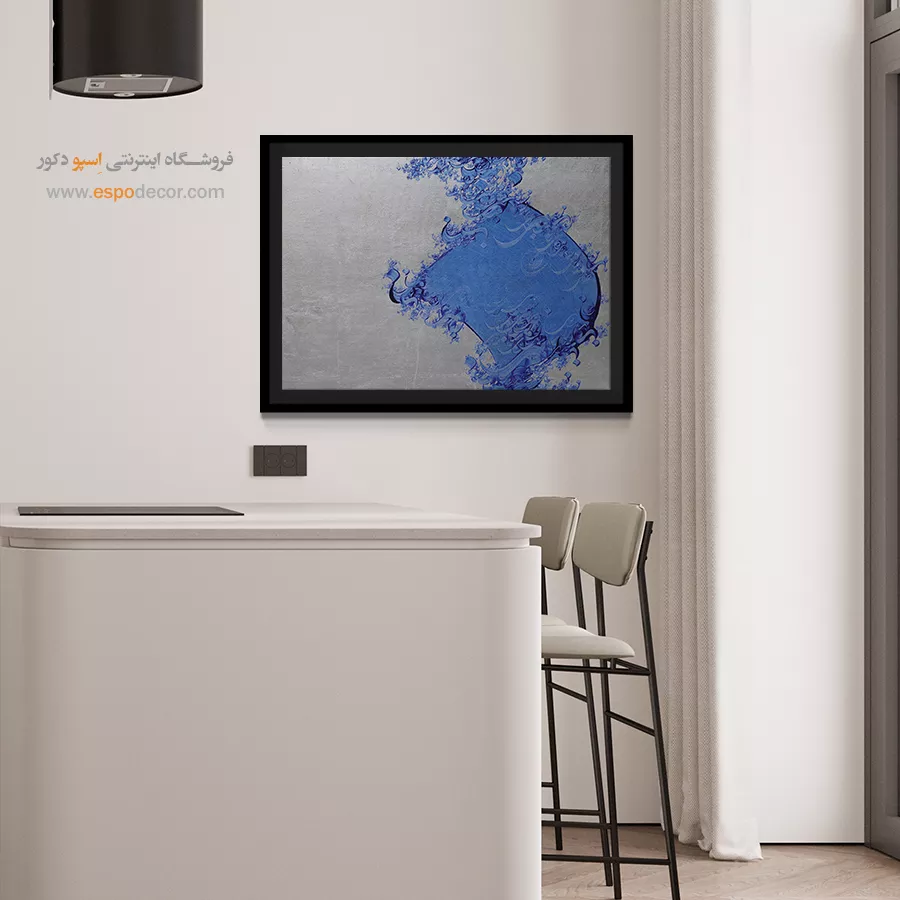 رنگ آبی، آرامش و تعادل را به فضا میآورد و در کنار نقرهای براق، حسی لوکس و مدرن ایجاد میکند. این ترکیب بهترین انتخاب برای دیوارهای روشن و فضاهای مینیمال است. جزئیات خطوط نیز پویایی و انرژی بصری خاصی به محیط میبخشند.
