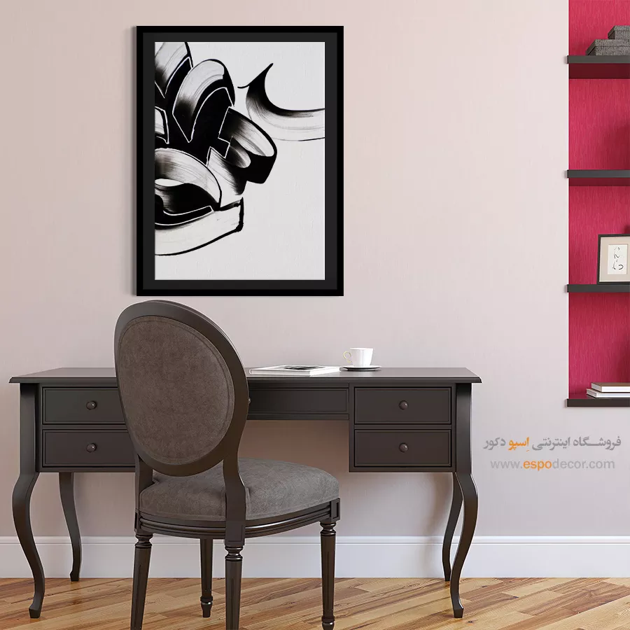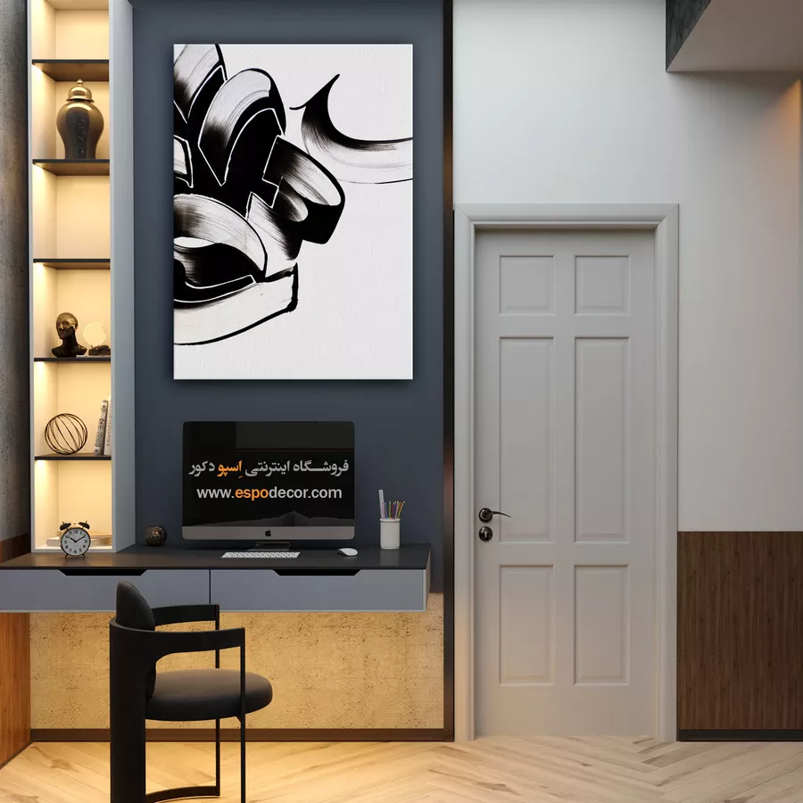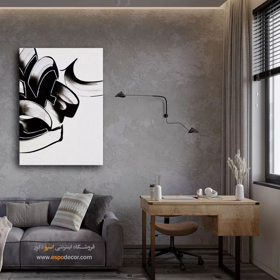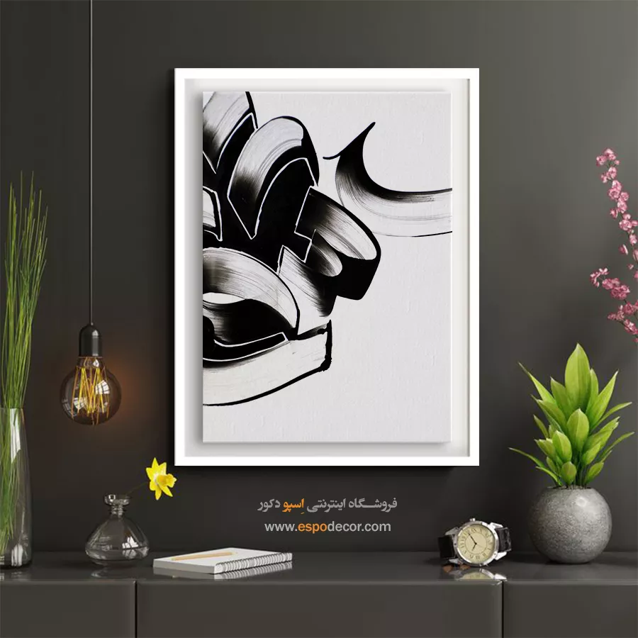 سیاهی عمیق خطوط در این اثر، در کنار پس‌زمینه سفید، نوعی کنتراست چشمگیر و مینیمال ایجاد می‌کند. این ترکیب رنگی در دکوراسیون مدرن، جلوه‌ای خاص و لوکس به فضا می‌دهد و در عین سادگی، احساس شکوه و قدرت را القا می‌کند. تابلوهایی با چنین طراحی سیاه و سفید، برای محیط‌هایی با دکور روشن، مینیمال و یا حتی کلاسیک مناسب‌اند و می‌توانند به‌عنوان نقطه کانونی در فضا بدرخشند.