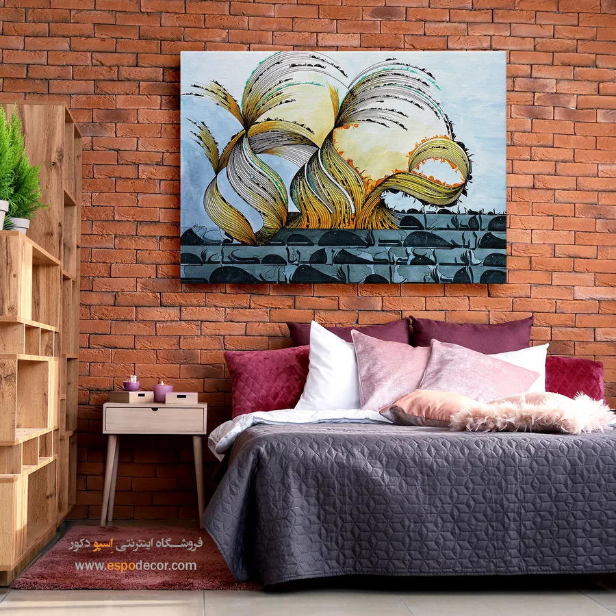 - ادامه طرح اصلی تا کنارههای بوم: ما در اسپو دکور از این روش استفاده میکنیم تا تابلو حالت منسجم و یکپارچه داشته باشد و از نمای کناری نیز جذاب دیده شود.