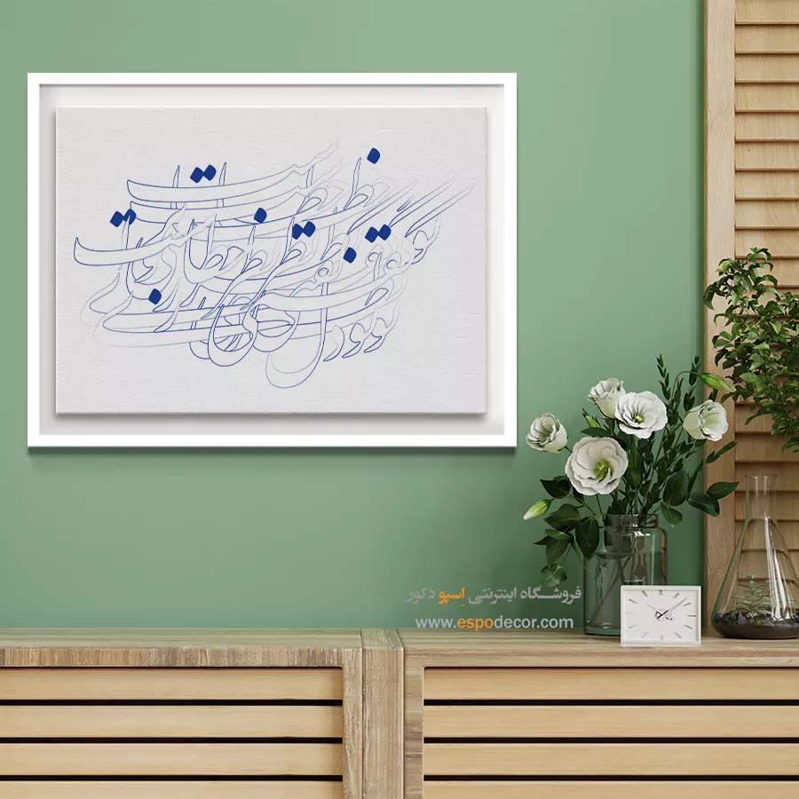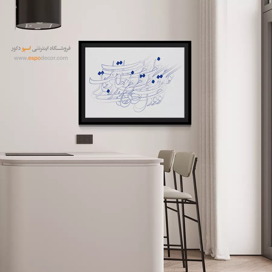 این اثر خوشنویسی با تلفیق سنت و مدرنیته، زیبایی خط فارسی را در قالبی تازه و ساده به نمایش گذاشته است. خطوط آبی‌رنگ در پس‌زمینه سفید، علاوه بر ایجاد شفافیت بصری، حس لطافت و پاکی را تداعی می‌کنند. انتخاب متن شاعرانه‌ی اثر، آن را به تابلویی عاشقانه و عمیق تبدیل کرده که توجه هر بیننده‌ای را به خود جلب می‌کند. خرید تابلو بوم خط زیبا با این سبک، گزینه‌ای خاص برای علاقه‌مندان به هنر ایرانی و دکوراسیون‌های امروزی است.