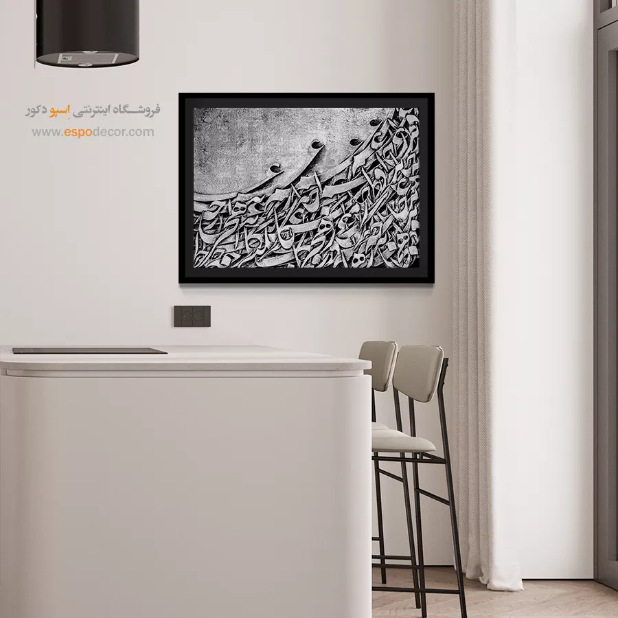 استفاده از رنگهای سیاه و سفید در این اثر، فضایی شیک و مینیمال خلق میکند که بهراحتی با سبکهای مدرن، کلاسیک یا مینیمالیستی در دکوراسیون هماهنگ میشود. این تابلو میتواند نقطه تمرکز چشمنواز در سالن نشیمن، دفتر کار یا حتی گالریهای هنری باشد. حضور آن در فضا، حس سکوت، تفکر و عمق را تداعی میکند.