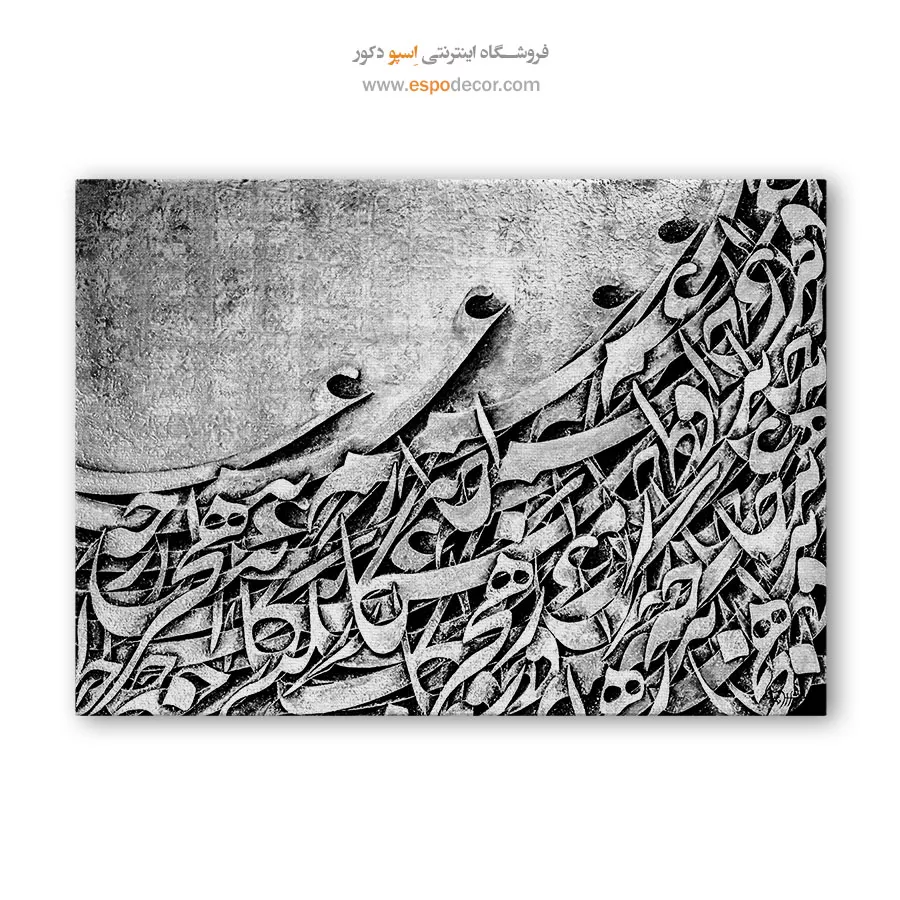 تابلوی «غم هجران» از زیباترین تابلوهای خوشنویسی است که با ظرافتی شاعرانه، مفهوم فراق و دلتنگی را در قالب هنر خط به نمایش میگذارد. در این اثر، کلمات با نظمی سیال و در عین حال پیچیده درهم تنیدهاند؛ همانند قلبی که درگیر احساسات ناگفته و اندوه دوری است. تضاد رنگهای سیاه و سفید، نماد تاریکی و روشنایی در دل انسان است؛ تاریکی غم و روشنایی امید. خرید تابلو خوشنویسی با چنین بار عاطفی، انتخابی ارزشمند برای کسانی است که به هنر معناگرا و مفاهیم عمیق انسانی علاقه دارند.