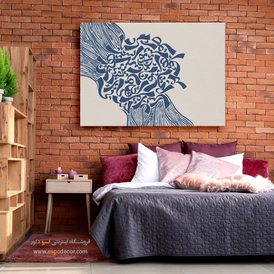 تابلو «به یوسف می‌توان بخشید تقصیر زلیخا را» اثری بدیع در سبک نقاشیخط مدرن است که با استفاده از خط نستعلیق و رنگ غالب آبی بر زمینه‌ای روشن، فضایی آرام و دلنشین می‌آفریند. اگر به دنبال خرید تابلو مدرن خط نستعلیق هستید که علاوه بر زیبایی بصری، حامل مفاهیم عمیق و عرفانی باشد، این اثر انتخابی ارزشمند است. در هم‌تنیدگی حروف و کلمات در این تابلو، یادآور داستان‌های عاشقانه و الهی است که در فرهنگ ایرانی جایگاه ویژه‌ای دارند.