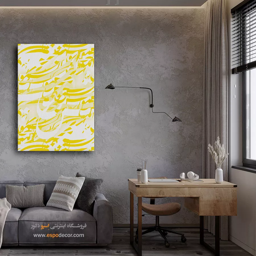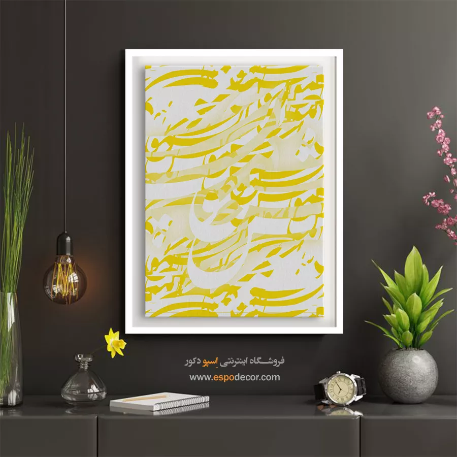 تابلوی فرم نویسی نمونهای چشمنواز از نقاشیخط انتزاعی است که با خطوطی روان و رنگ غالب زرد، انرژی و طراوتی خاص را به نمایش میگذارد. خرید تابلو نقاشیخط انتزاعی مانند این اثر، نه تنها فضایی مدرن و پرنشاط به دکوراسیون شما میبخشد، بلکه بیانگر پیوند میان هنر سنتی خوشنویسی ایرانی و سبکهای نوگرایانه انتزاعی است.