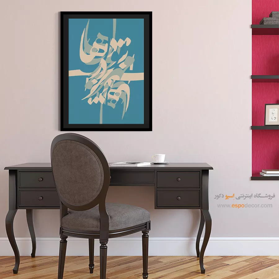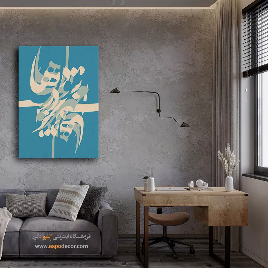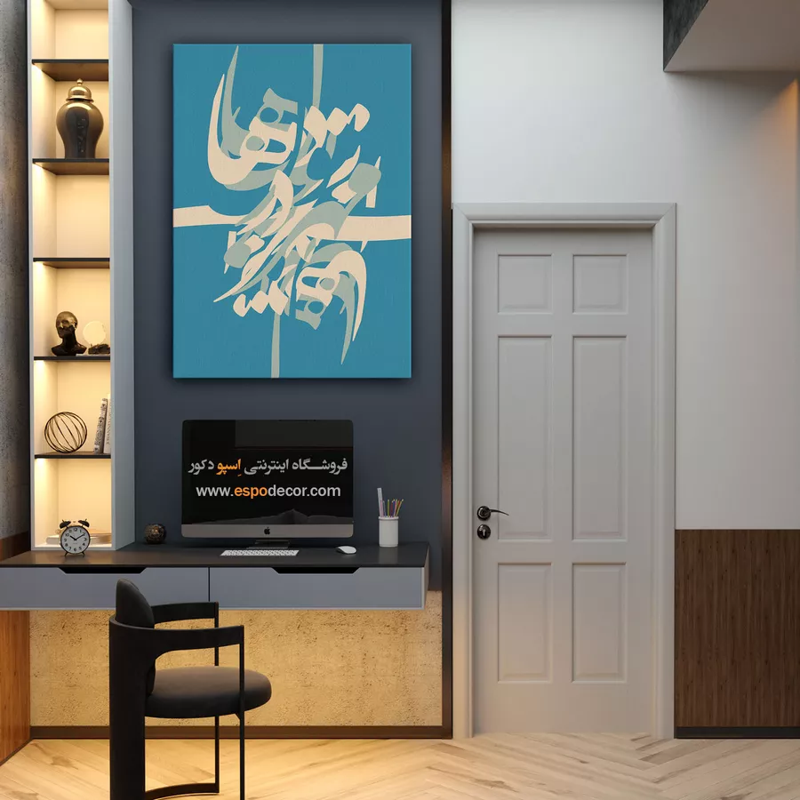 این تابلو قابلیت هماهنگی با هر دو سبک دکوراسیون را دارد. در فضاهای سنتی، نمادی از اصالت و شعر ایرانی خواهد بود و در محیطهای مدرن، با فرم انتزاعی و رنگهای سادهاش، بهعنوان یک عنصر دکوراتیو چشمنواز عمل میکند. نصب آن در سالن پذیرایی، اتاق مطالعه یا حتی فضای کاری، جلوهای هنری و متمایز به محیط میبخشد.