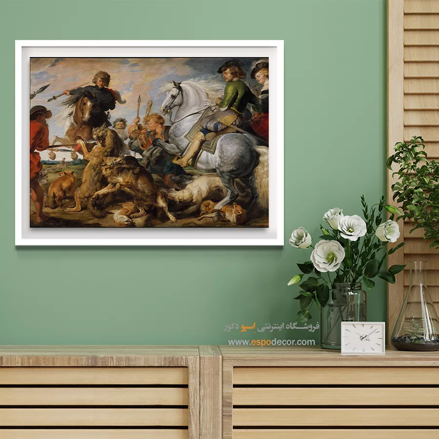 صحنهای پرشور از شکار گرگها توسط سواران، یکی از آثار برجسته روبنس است. رنگهای پویا و حرکات دراماتیک حیوانات و انسانها، هیجان و تنش را به اوج میرساند.