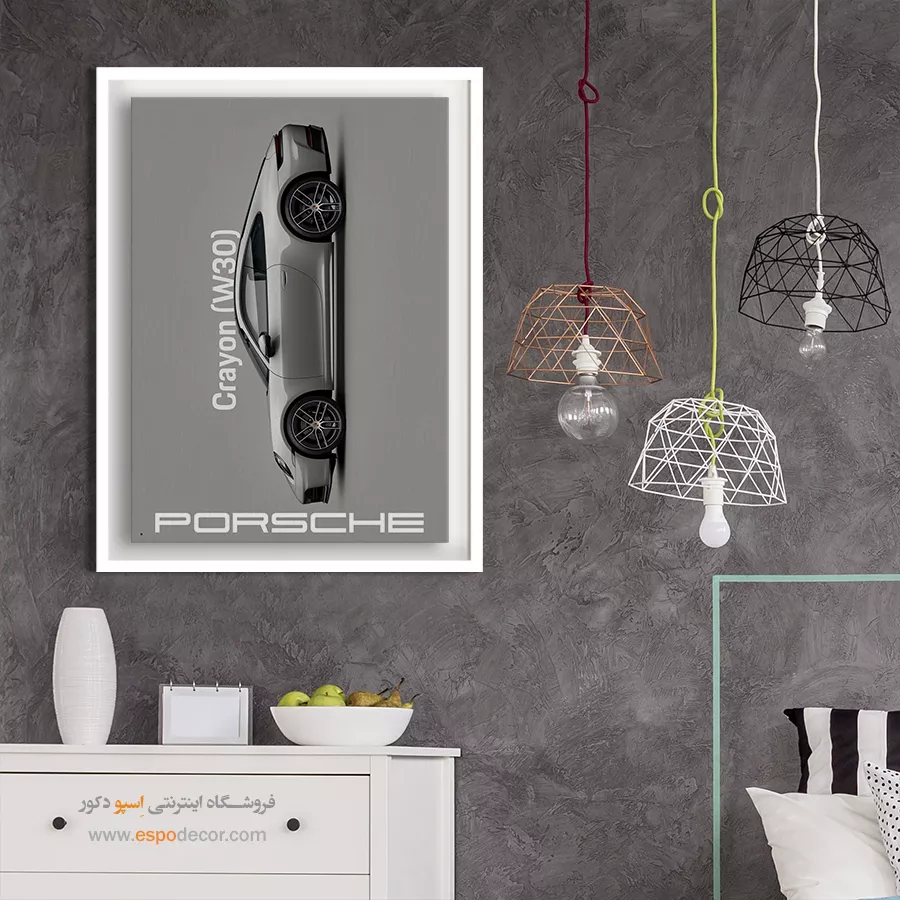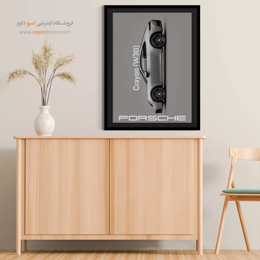 معمولاً شامل یک چاپ (روی کاغذ یا مقوا) است که داخل یک قاب چوبی، فلزی یا PVC قرار گرفته و برای محافظت از تصویر، با شیشه یا پلکسی پوشانده میشود، که این شیشه و قاب وزن و جلوهی رسمیتری به آن میبخشد.